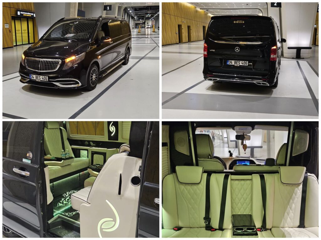 Mercedes Vito veya benzeri lüks araçlarla geniş iç hacim ve büyük bagaj kapasitesi.